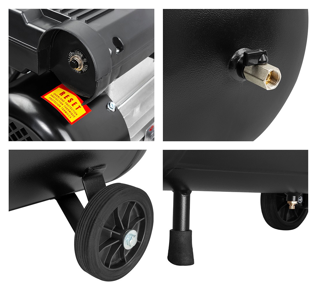 Le compresseur est équipé de grandes roues et d’une poignée confortable, ce qui le rend facile à manœuvrer.