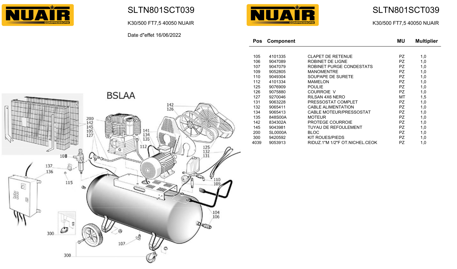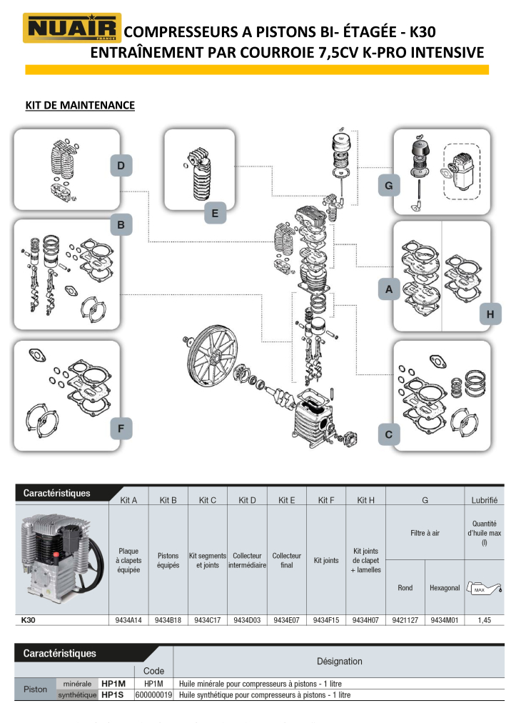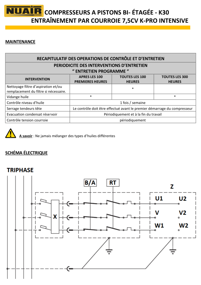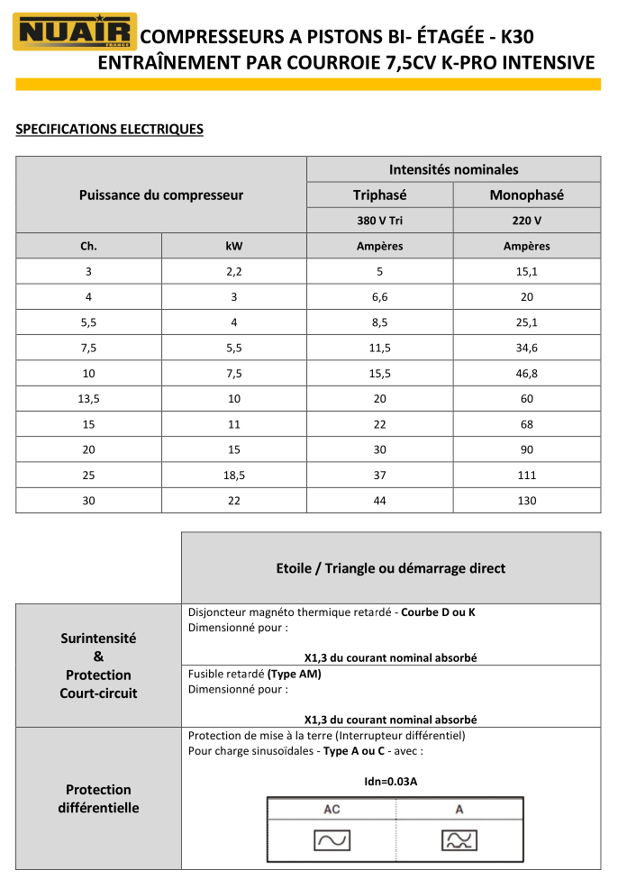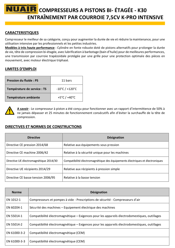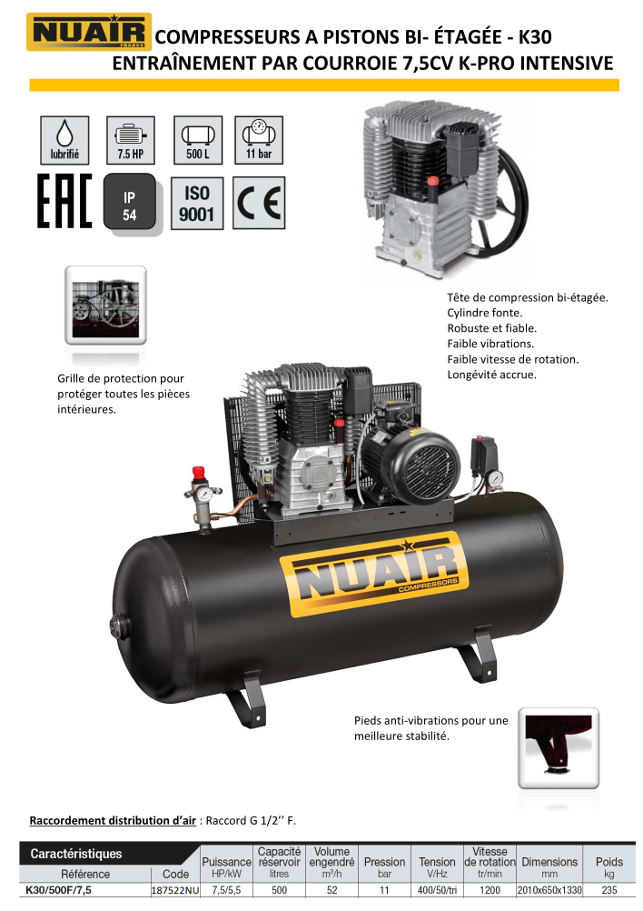 - Compresseur à piston NUAIR série K-PRO Intensive de 7,5 CV sur cuve de 500 L