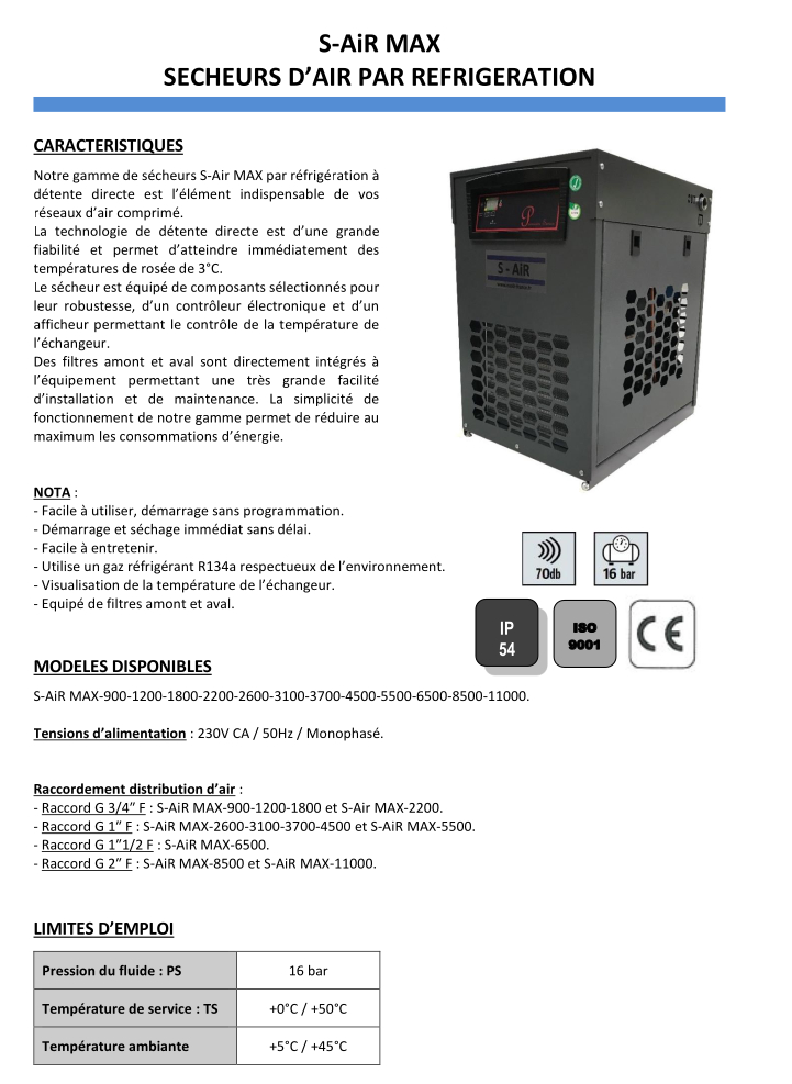 - Pression maxi : 16 bar