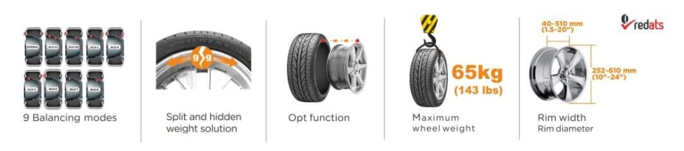 REDATS W-680 est un équilibreur de roue automatique pour les véhicules de tourisme et les camionnettes de livraison. Il servira des roues avec les paramètres suivants :