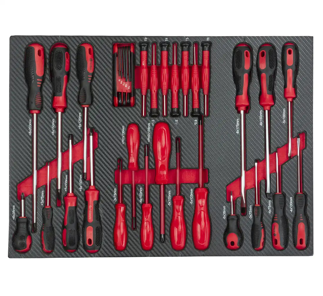 • 4 tournevis plats : 6×125, 5×100, 4×100, 3×75