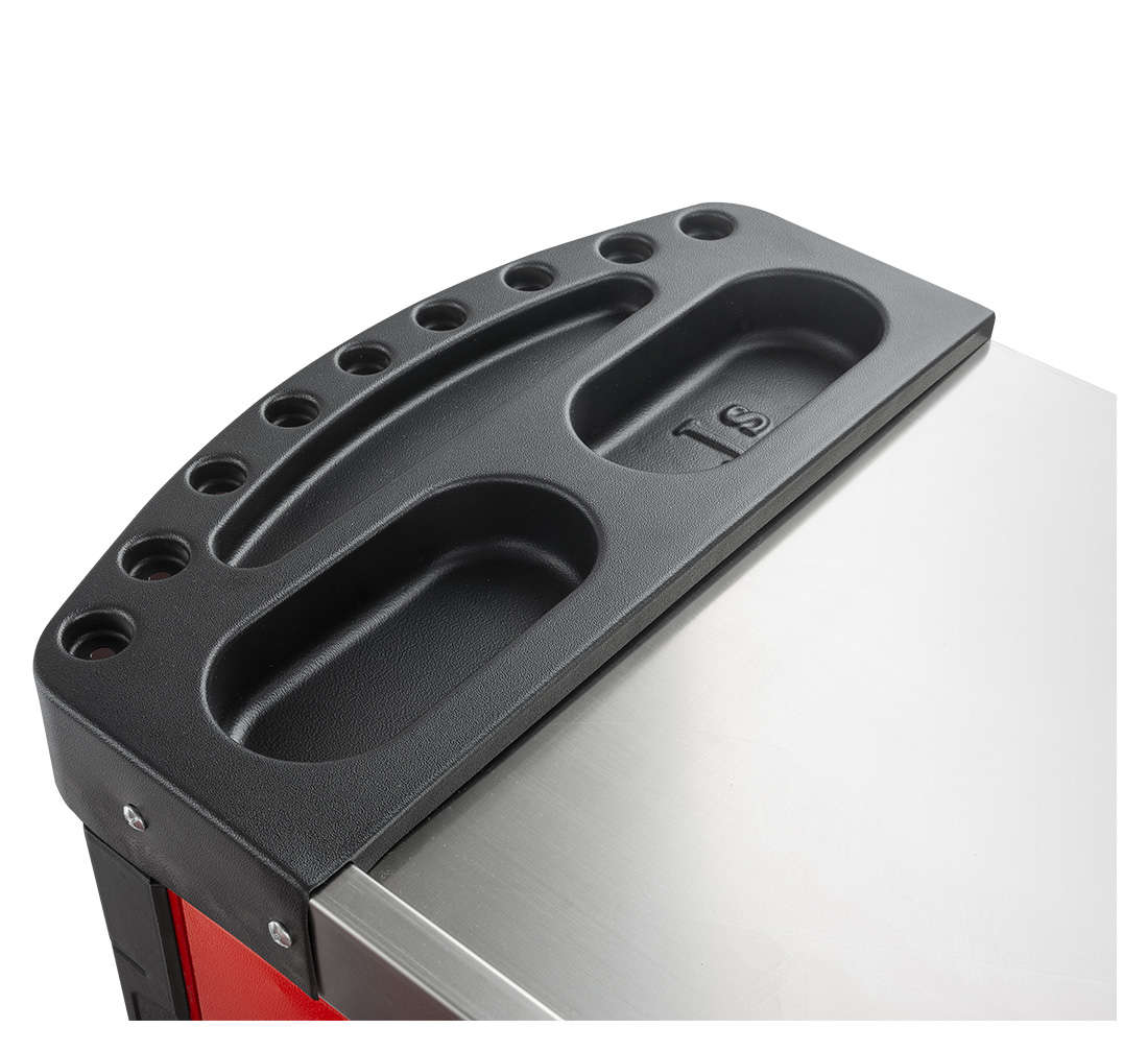 Les tiroirs 6 et 7 (vides) sont destinés au stockage (seul) d’outils/accessoires plus volumineux.