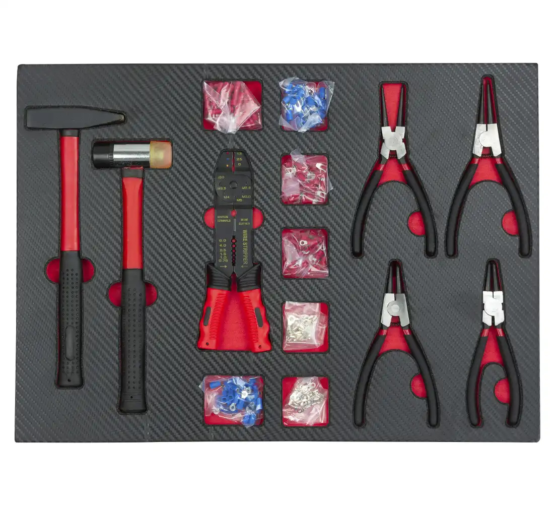 – pince pour sertir des cosses de câble isolées avec un jeu de cosses