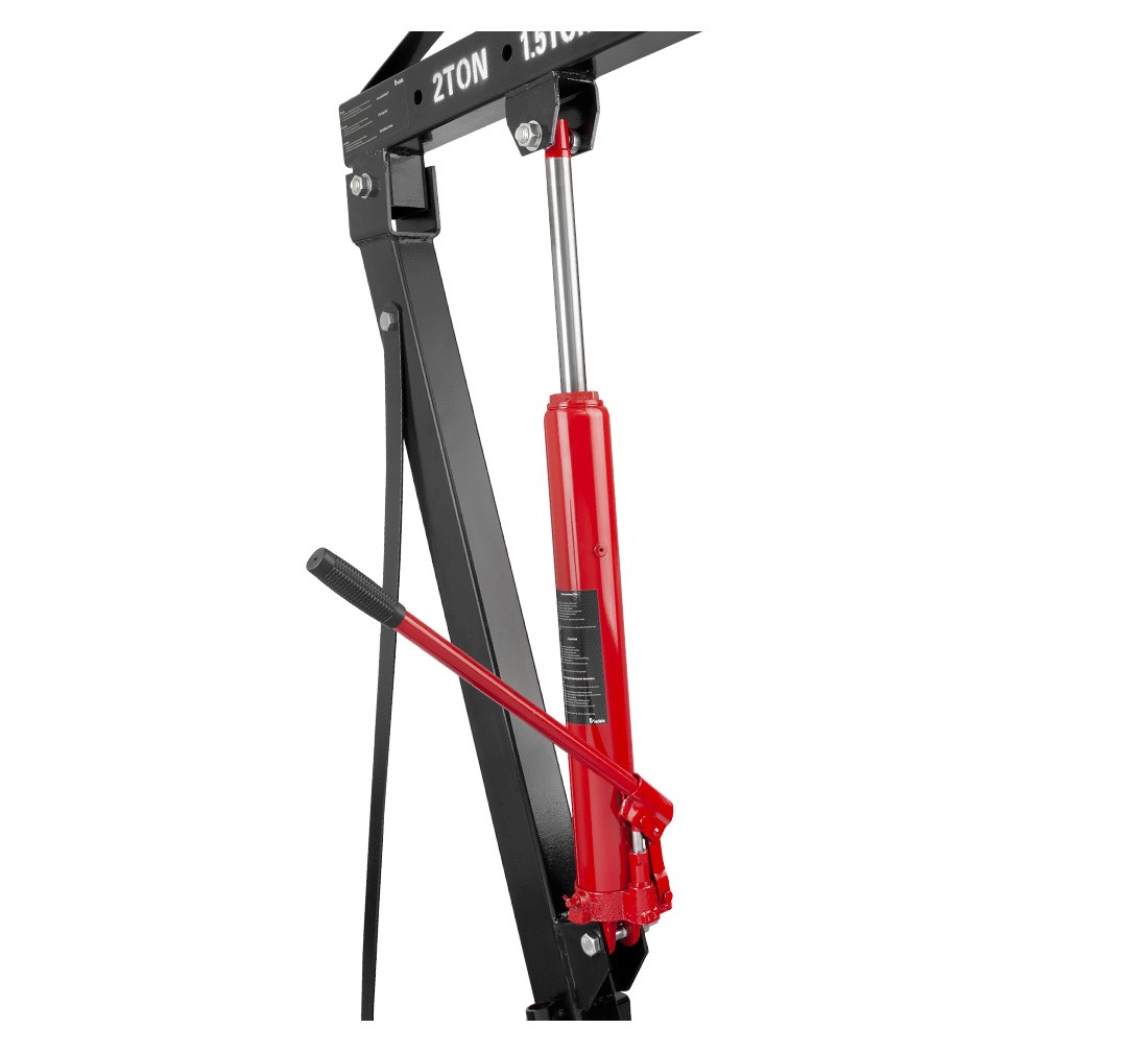 Cette grue est destinée au levage d’éléments lourds, sa capacité de levage maximale est de 2 tonnes. Il est utile lors de l’extraction de pièces telles que des moteurs de voiture ou des boîtes de vitesses.