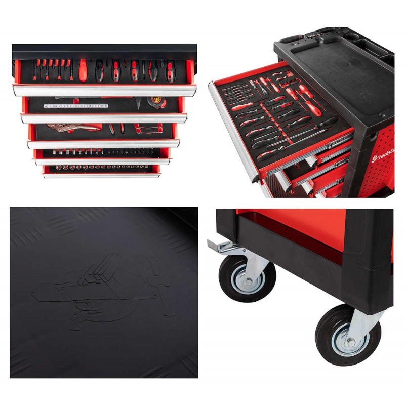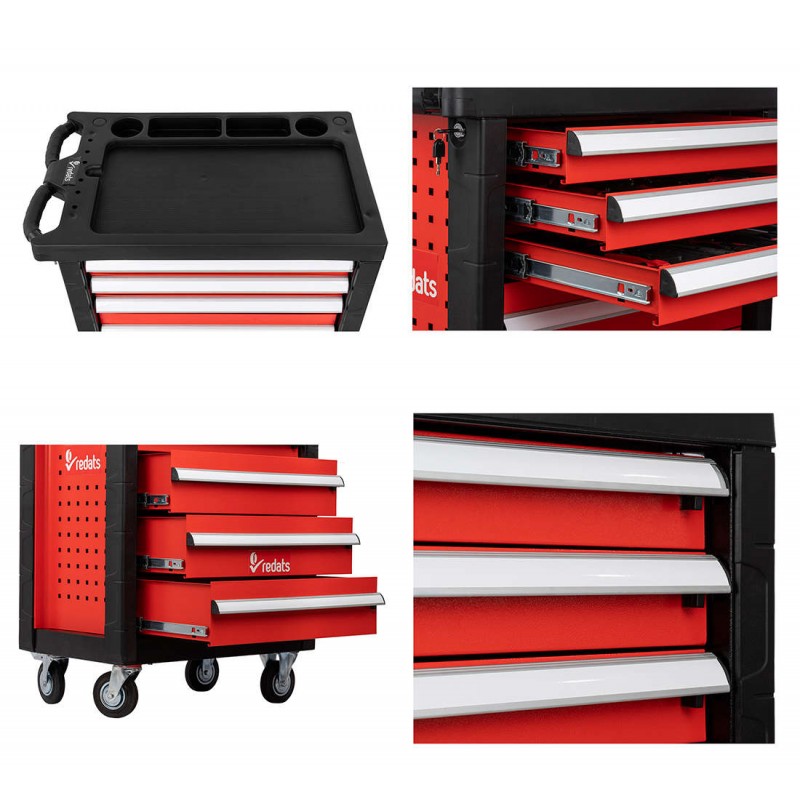 Cette servante Redats est composée de 196 outils soit 5 tiroirs remplies et le tiroir 6 vous servira de rangement , vous pourrez voir les outils fournis en glissant les photos .