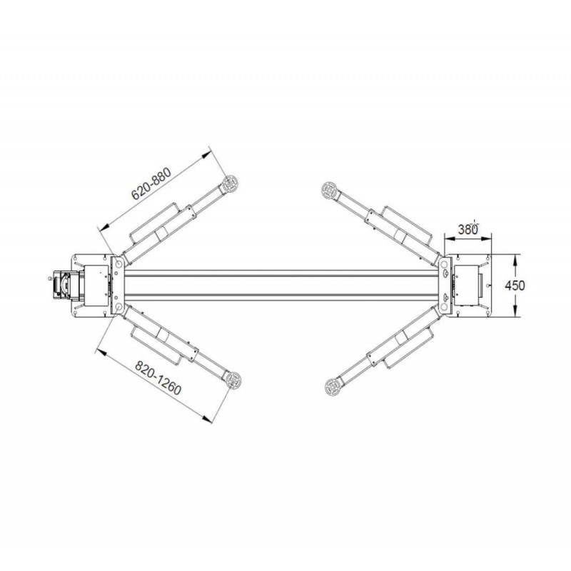 Cette solution permet un équilibre optimal du véhicule levé. De plus, les bras ont un niveau de réglage télescopique, grâce auquel vous pouvez précisément les placer à l’endroit approprié pour monter la voiture.