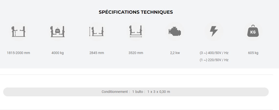 • Permet de lever les véhicules particuliers mais également des utilitaires jusqu’à 4 tonnes.