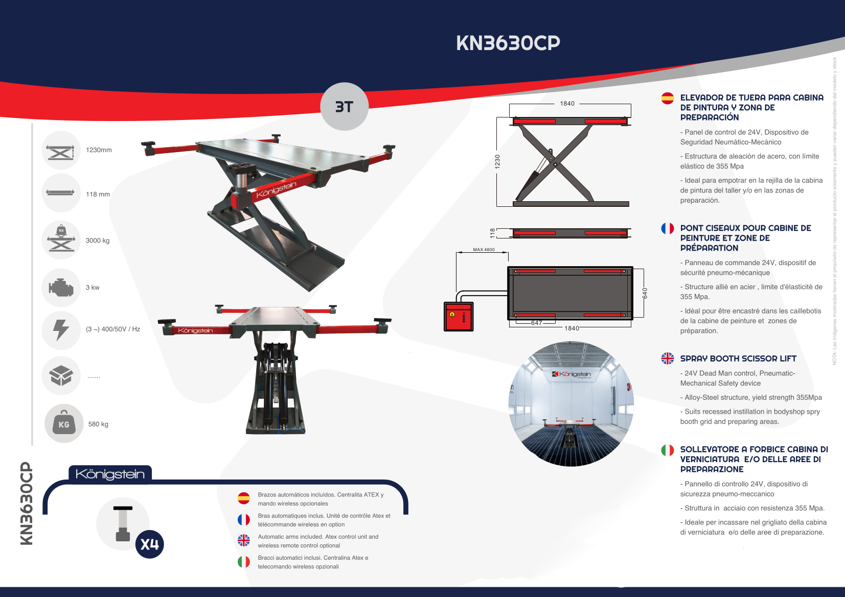 PONT ELEVATEUR CISEAUX POUR CABINE DE PEINTURE ET ZONE DE PRÉPARATION – Königstein KN3630CP