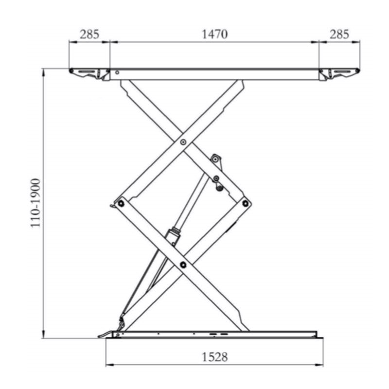 - Double piston sur chaque plateforme, avec cylindres hydrauliques principaux